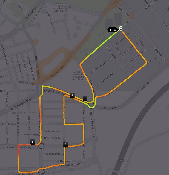 Se trata de un circuito totalmente urbano que transcurre por las calles de Alcorcón, salida Industrias - Parque Ferial - Hayas - Pablo Neruda - MartinLuther King - Gabriela Mistral - Diversidad - Naciones Unidas - Democracia - Martin Luther King - Ciudadanía - Pablo Picasso - Democracia - Jose Saramago - Parque Ferial - Electrónica - Navales - Industrias.
